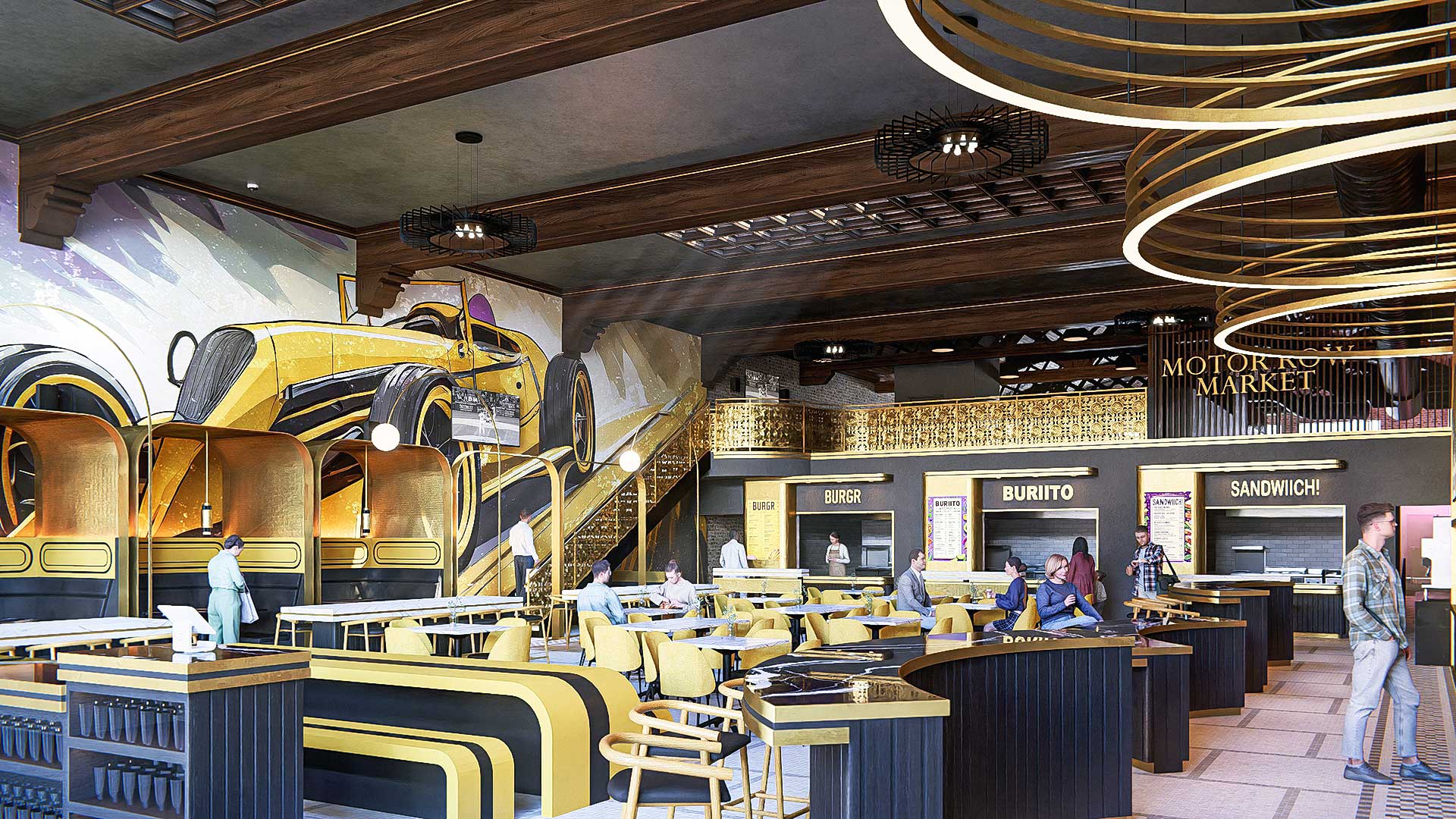 Nestled in Chicago’s legendary Motor Row Historic District, this extraordinary 9,000+ square foot food hall occupies a meticulously restored building that once served as a showroom for the prestigious Mercer Automobile Company. The intimate culinary destination seamlessly blends authentic Art Deco design elements—soaring ceilings, geometric patterns, and period details—with cutting-edge dining experiences that honor the glamorous 1920s era when Motor Row was the epicenter of America’s automotive industry.