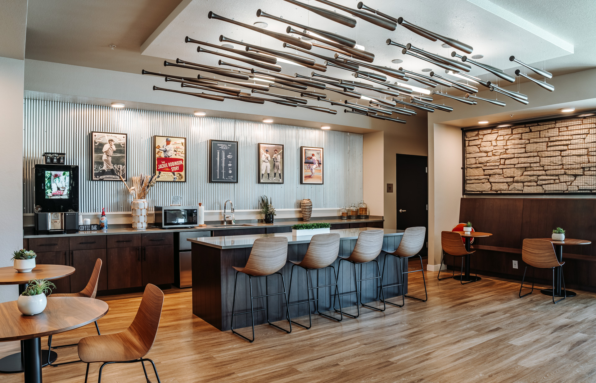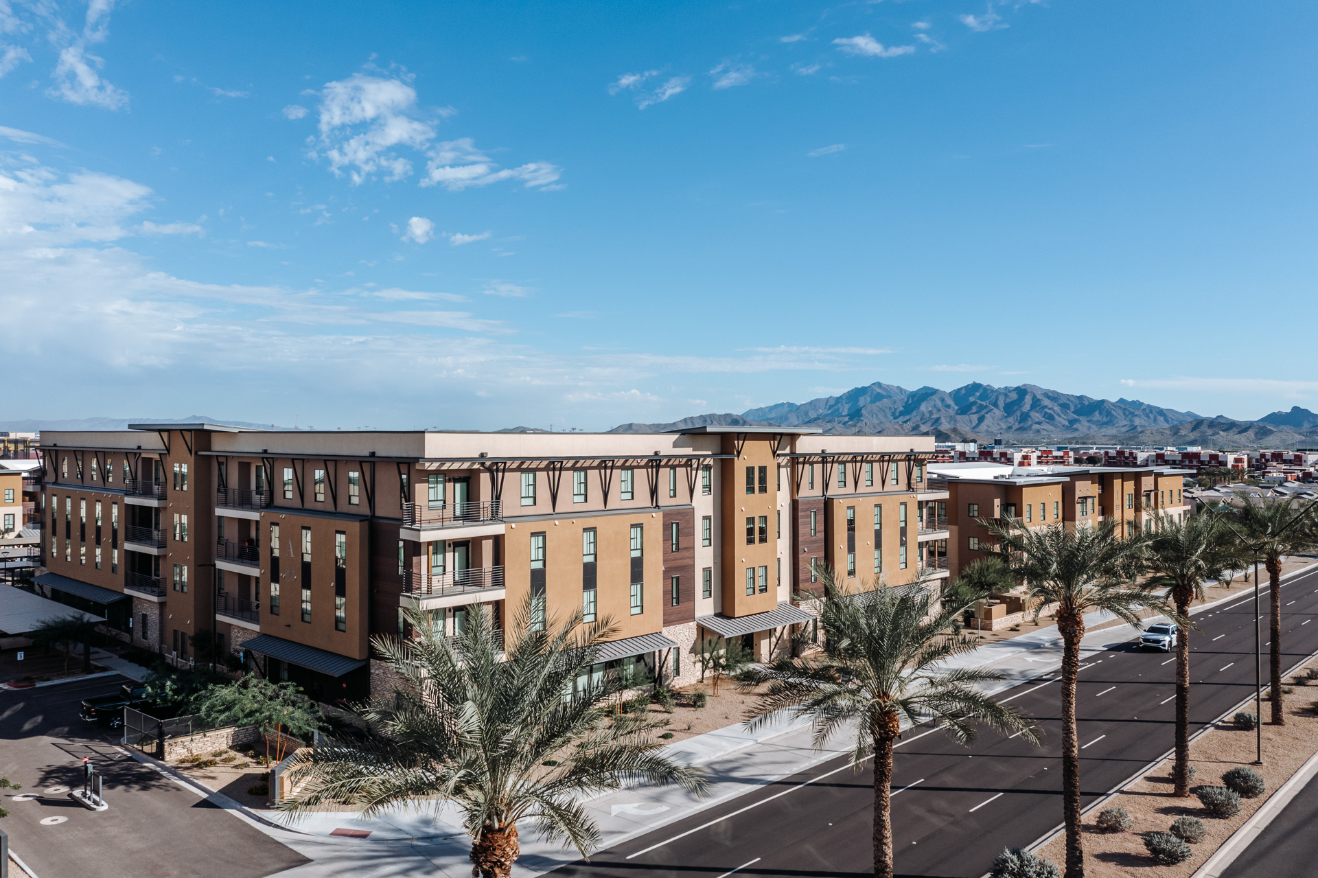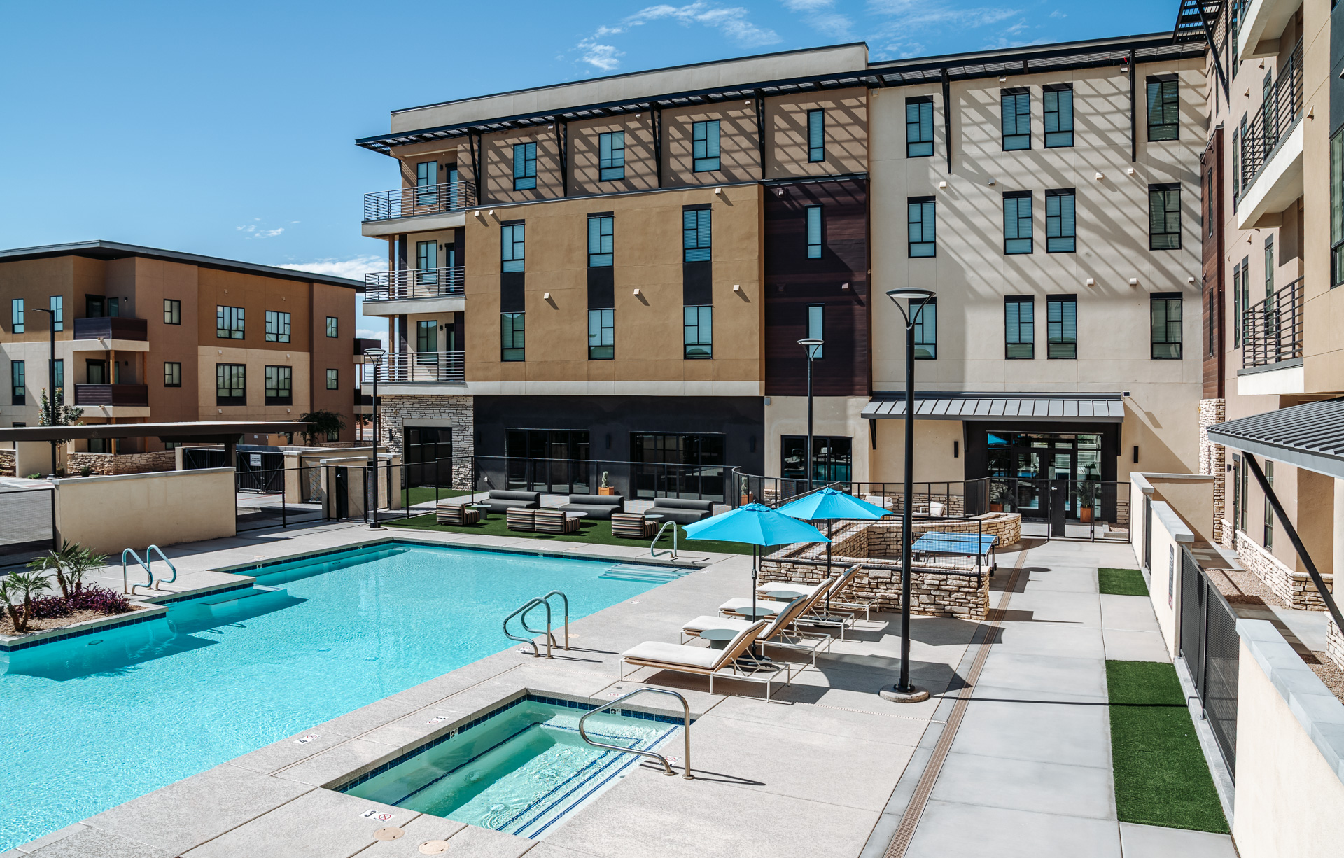 LCM developed the master plan for the Solace at Ballpark Village multifamily development and designed seven, three-story residential buildings for the site. A shared amenity building houses the leasing office, fitness center, bar/kitchen, media zone, game room, and retail. Tenants enjoy outdoor gardens, a pool, a dog run, and a children’s play area. Design elements reflect the characteristics of the surrounding Sonoran Desert, using stone, stucco, and wood to articulate the exteriors. The landscape design complements the buildings’ organic quality with colorful native plantings and natural features.